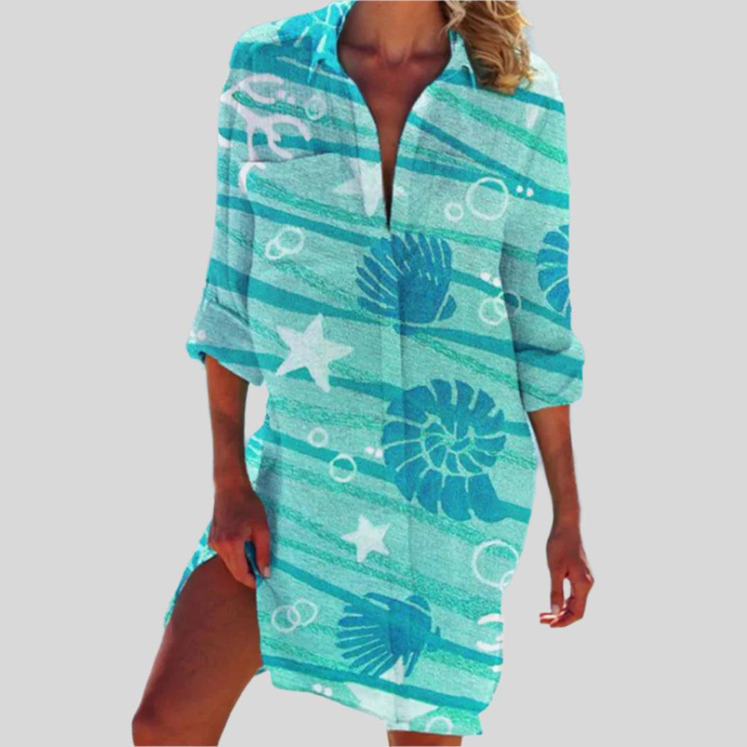 Ολίβια | Φόρεμα με κουμπιά καλοκαιρινό με μακριά μανίκια