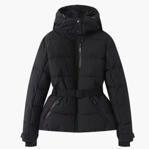 Giulia | Vyötäröllä varustettu hupullinen toppatakki naisille — Tyylikkyys & Talvinen Lämpö