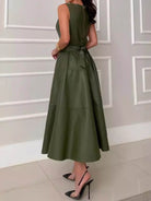 שמלות ללא שרוולים מציעה גזרה מחמיאה. הבד הקל שלה מבטיח נוחות אופטימלית. מושלמת לימים שטופי שמש.