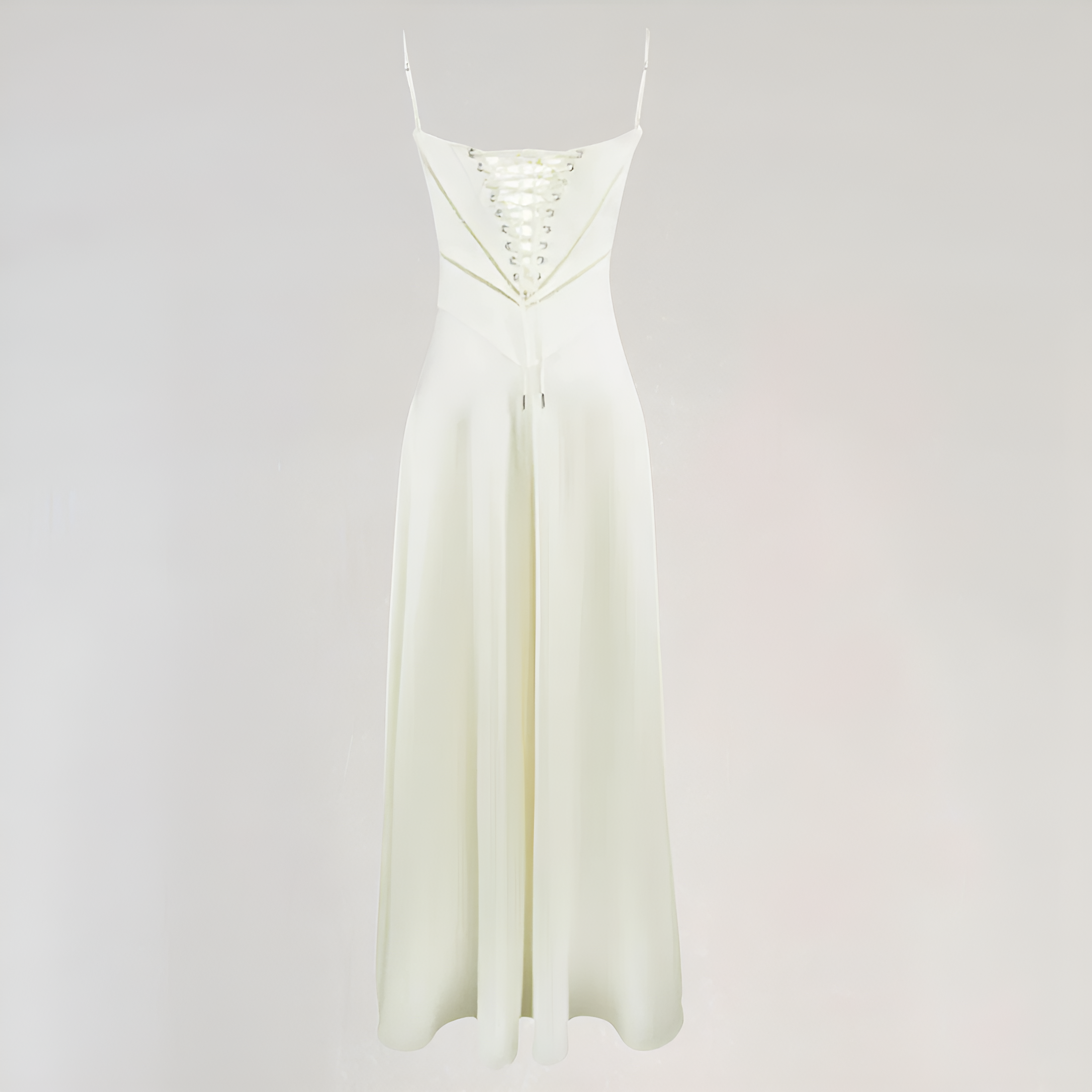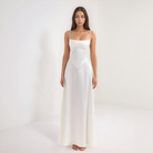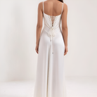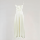 Deze maxi-jurk accentueert de silhouette dankzij het corsetachtige lijfje dat de taille subtiel benadrukt. De vloeiende snit zorgt voor beweging en elegantie, terwijl de corsetrug een romantische en gestructureerde toets toevoegt. Ideaal voor avonden, galas of ceremonies.