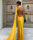 De Jade jurk verleidt met zijn elegante draping en lange snit die de silhouette prachtig accentueert. Het ontwerp en de halterrug onthullen de schouders met verfijning, terwijl een discrete strik een vleugje verfijnde vrouwelijkheid toevoegt. Ontworpen voor grote gelegenheden, combineert het moeiteloos glamour en comfort.