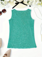 Deze mouwloze top heeft een flatterende V-hals. Volledig versierd met pailletten, voegt het een vleugje glans toe aan uw outfit. Perfect voor feestelijke gelegenheden of om een casual look op te fleuren.