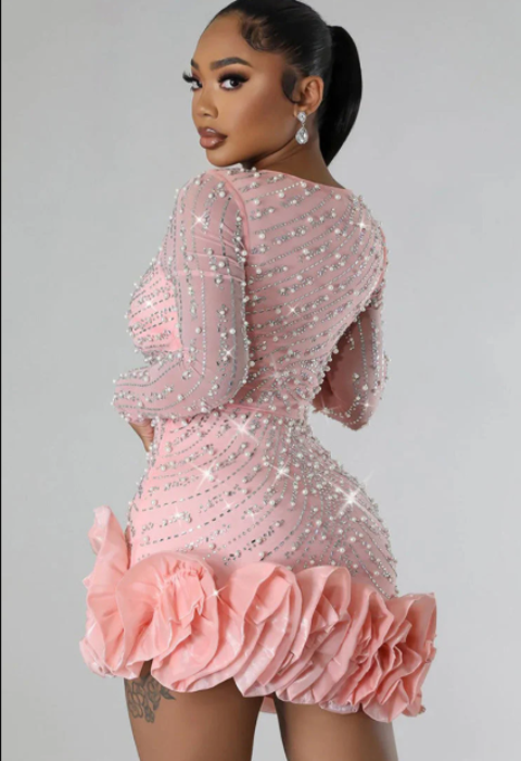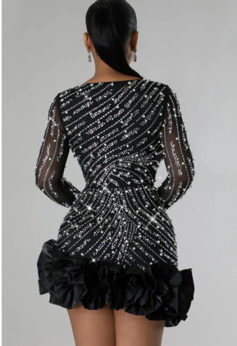 Kélia | Sukienka Mini Obcisła z Kryształowymi Ozdobami