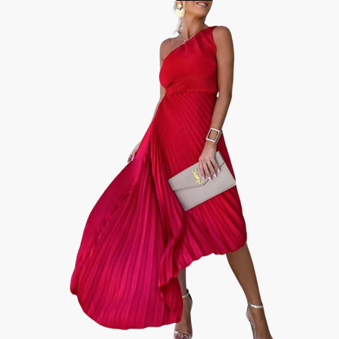 Gwendoline | Elegancka asymetryczna sukienka z delikatnymi falbanami