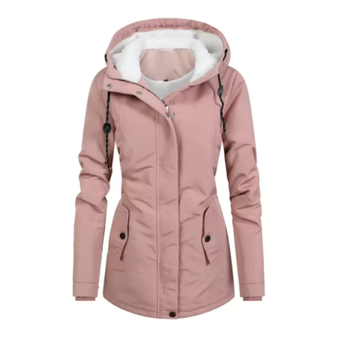 Xavia | Geacă Lungă Cozy pentru Femei — Glugă și Captuseală Contrastantă