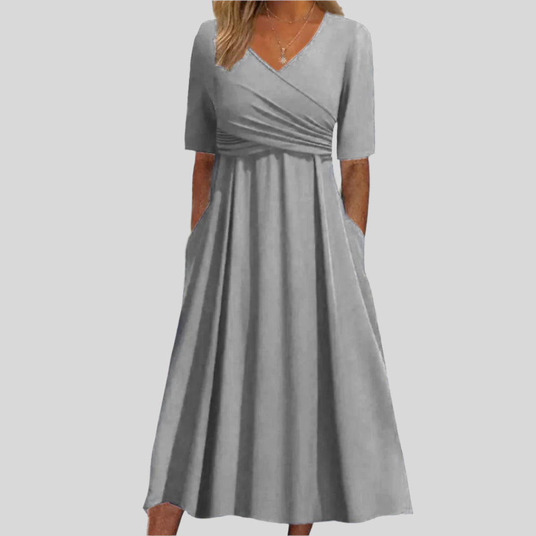 Faustine | Rochie Lungă Încrucișată cu Mâneci Scurte
