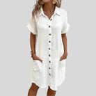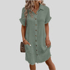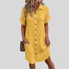 Această rochie cămașă cu butoni oferă o croială largă și confortabilă. Disponibilă în mai multe culori, se adaptează la toate ocaziile. Designul său atemporal o face un element esențial în garderoba ta.
