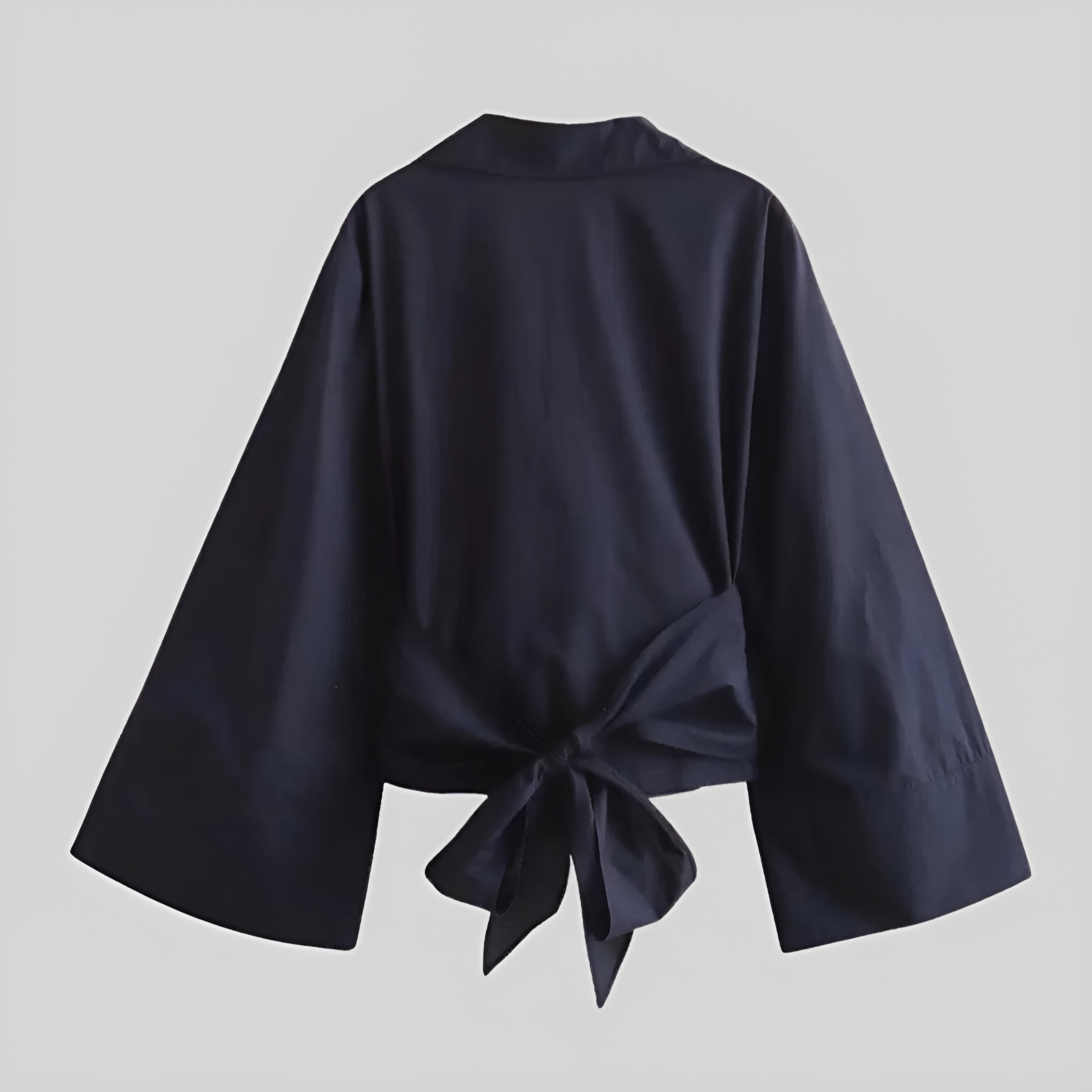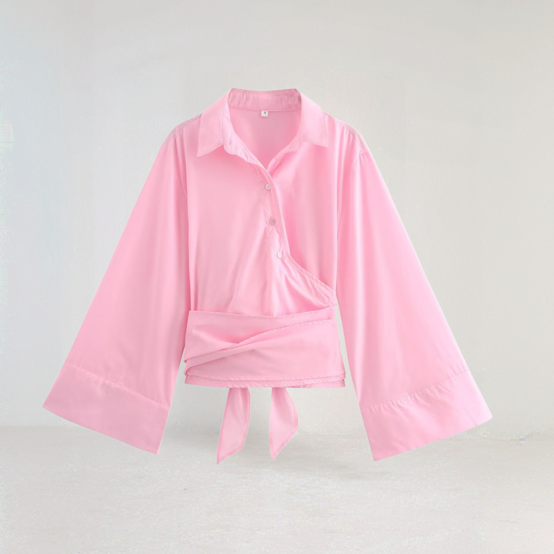 Táto letná dámska košeľa s prekríženým strihom ponúka lichotivý strih s výstrihom do V a rozšírenými rukávmi. Jej prekrížené zapínanie s dvojitým gombíkom pridáva nádych sofistikovanosti. Ideálna na horúce dni, spája pohodlie a štýl.