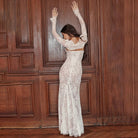 Ninon | Lång Klänning i Spets med Dragsko och Sjal